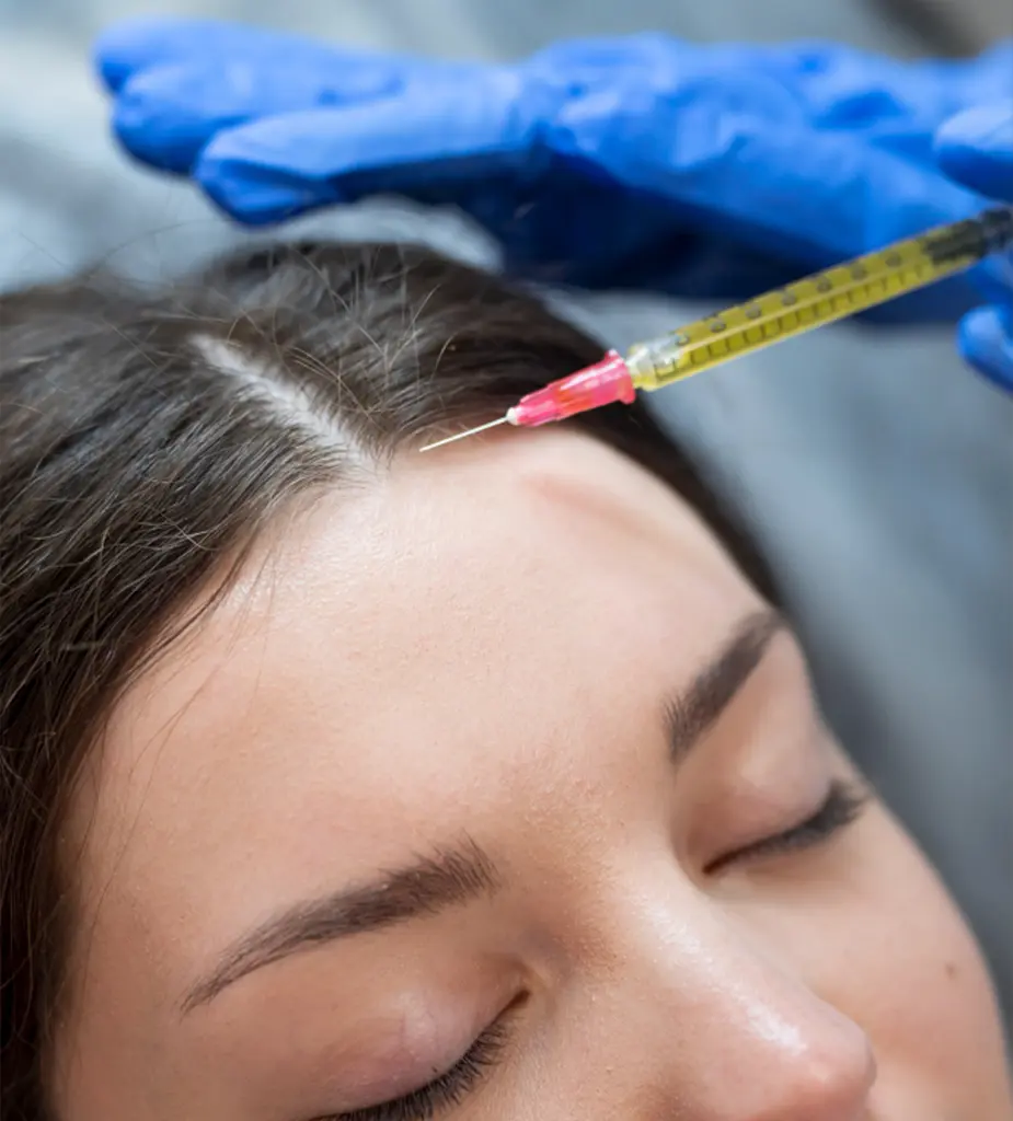 Terapia injetável feita com o próprio sangue do paciente, rica em fatores de crescimento que estimulam a regeneração do folículo capilar.